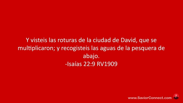 Y visteis las roturas de la ciudad de David, que se multiplicaron; y recogisteis las aguas de la pesquera de abajo. -Isaías 22:9 RV1909