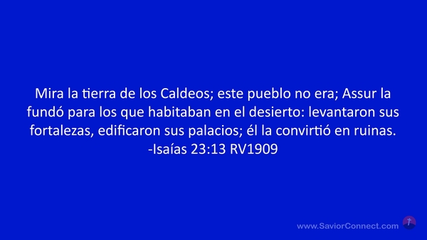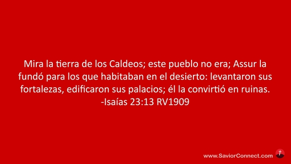 Mira la tierra de los Caldeos; este pueblo no era; Assur la fundó para los que habitaban en el desierto: levantaron sus fortalezas, edificaron sus palacios; él la convirtió en ruinas. -Isaías 23:13 RV1909