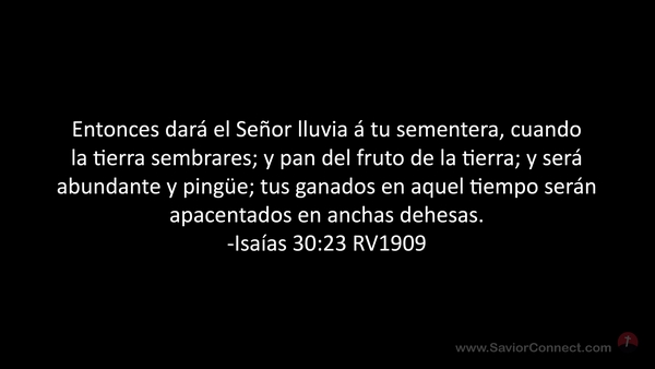 Entonces dará el Señor lluvia á tu sementera, cuando la tierra sembrares; y pan del fruto de la tierra; y será abundante y pingüe; tus ganados en aquel tiempo serán apacentados en anchas dehesas. -Isaías 30:23 RV1909