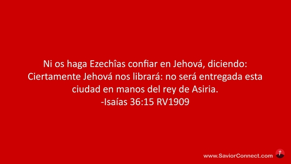Ni os haga Ezechîas confiar en Jehová, diciendo: Ciertamente Jehová nos librará: no será entregada esta ciudad en manos del rey de Asiria. -Isaías 36:15 RV1909