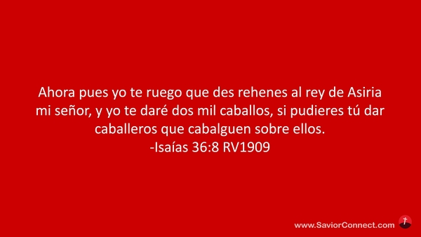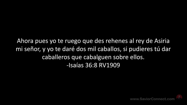 Ahora pues yo te ruego que des rehenes al rey de Asiria mi señor, y yo te daré dos mil caballos, si pudieres tú dar caballeros que cabalguen sobre ellos. -Isaías 36:8 RV1909