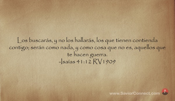 Los buscarás, y no los hallarás, los que tienen contienda contigo; serán como nada, y como cosa que no es, aquellos que te hacen guerra. -Isaías 41:12 RV1909
