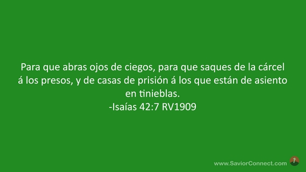 Para que abras ojos de ciegos, para que saques de la cárcel á los presos, y de casas de prisión á los que están de asiento en tinieblas. -Isaías 42:7 RV1909