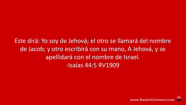 Este dirá: Yo soy de Jehová; el otro se llamará del nombre de Jacob; y otro escribirá con su mano, A Jehová, y se apellidará con el nombre de Israel. -Isaías 44:5 RV1909