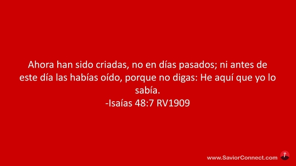 Ahora han sido criadas, no en días pasados; ni antes de este día las habías oído, porque no digas: He aquí que yo lo sabía. -Isaías 48:7 RV1909