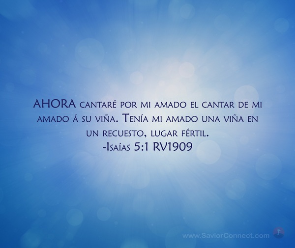 AHORA cantaré por mi amado el cantar de mi amado á su viña. Tenía mi amado una viña en un recuesto, lugar fértil. -Isaías 5:1 RV1909