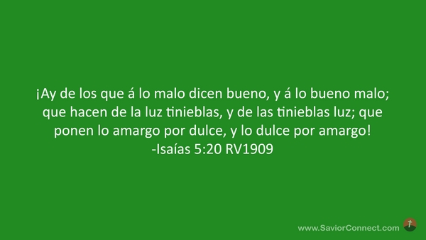 ¡Ay de los que á lo malo dicen bueno, y á lo bueno malo; que hacen de la luz tinieblas, y de las tinieblas luz; que ponen lo amargo por dulce, y lo dulce por amargo! -Isaías 5:20 RV1909