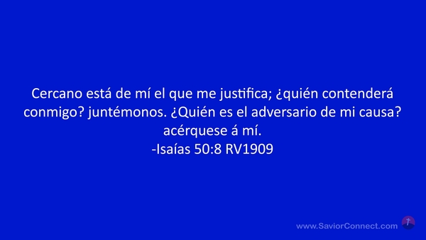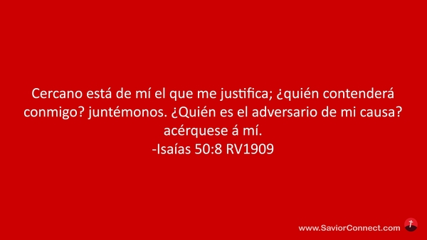 Cercano está de mí el que me justifica; ¿quién contenderá conmigo? juntémonos. ¿Quién es el adversario de mi causa? acérquese á mí. -Isaías 50:8 RV1909