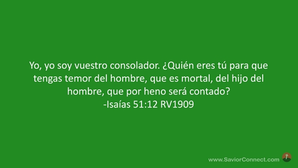 Yo, yo soy vuestro consolador. ¿Quién eres tú para que tengas temor del hombre, que es mortal, del hijo del hombre, que por heno será contado? -Isaías 51:12 RV1909
