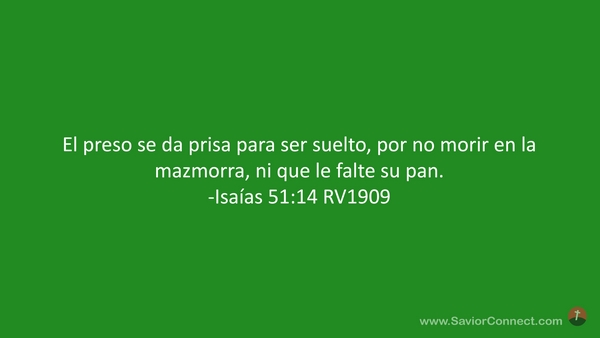 El preso se da prisa para ser suelto, por no morir en la mazmorra, ni que le falte su pan. -Isaías 51:14 RV1909
