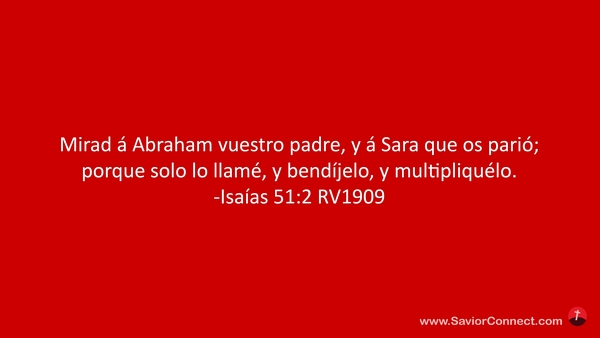 Mirad á Abraham vuestro padre, y á Sara que os parió; porque solo lo llamé, y bendíjelo, y multipliquélo. -Isaías 51:2 RV1909
