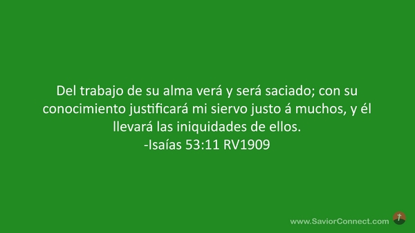 Del trabajo de su alma verá y será saciado; con su conocimiento justificará mi siervo justo á muchos, y él llevará las iniquidades de ellos. -Isaías 53:11 RV1909