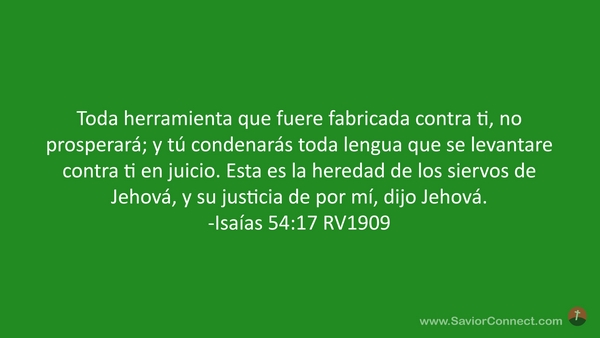 Toda herramienta que fuere fabricada contra ti, no prosperará; y tú condenarás toda lengua que se levantare contra ti en juicio. Esta es la heredad de los siervos de Jehová, y su justicia de por mí, dijo Jehová. -Isaías 54:17 RV1909