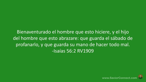 Bienaventurado el hombre que esto hiciere, y el hijo del hombre que esto abrazare: que guarda el sábado de profanarlo, y que guarda su mano de hacer todo mal. -Isaías 56:2 RV1909