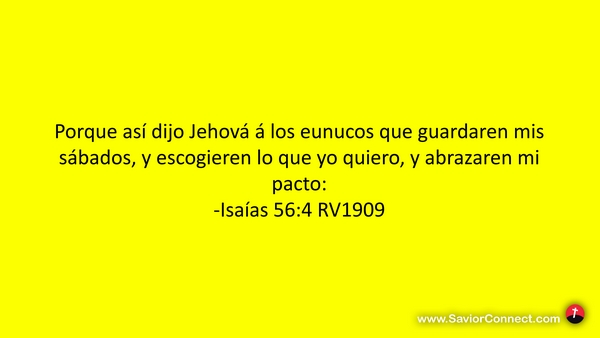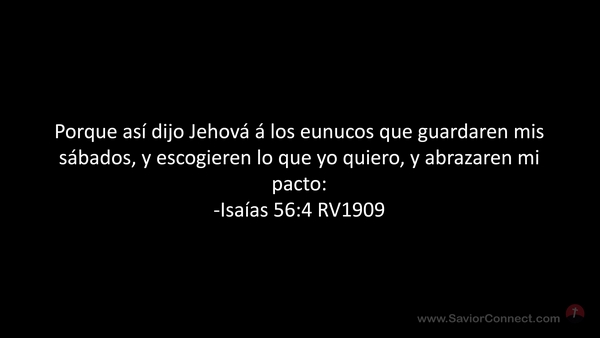 Porque así dijo Jehová á los eunucos que guardaren mis sábados, y escogieren lo que yo quiero, y abrazaren mi pacto: -Isaías 56:4 RV1909