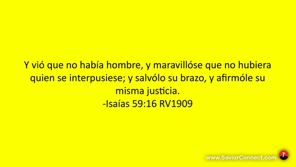 Y vió que no había hombre, y maravillóse que no hubiera quien se interpusiese; y salvólo su brazo, y afirmóle su misma justicia. -Isaías 59:16 RV1909