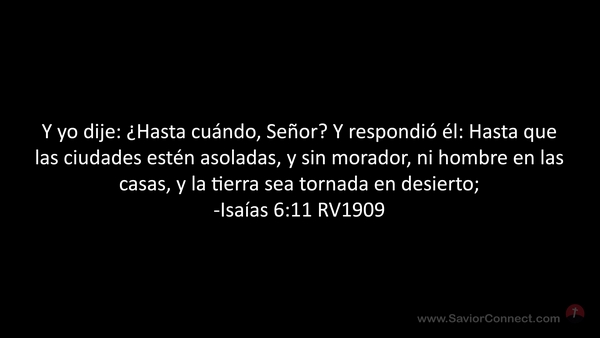 Y yo dije: ¿Hasta cuándo, Señor? Y respondió él: Hasta que las ciudades estén asoladas, y sin morador, ni hombre en las casas, y la tierra sea tornada en desierto; -Isaías 6:11 RV1909