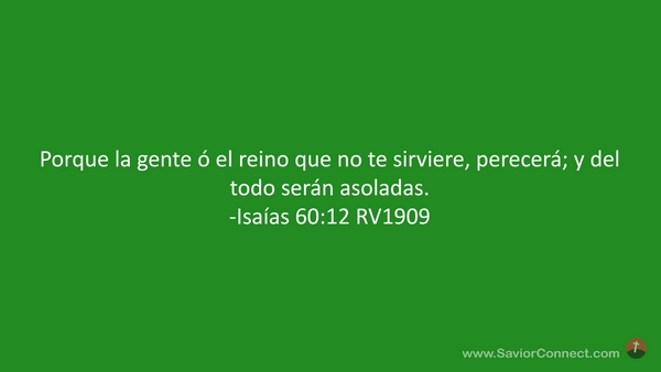 Porque la gente ó el reino que no te sirviere, perecerá; y del todo serán asoladas. -Isaías 60:12 RV1909