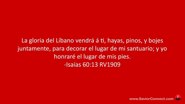 La gloria del Líbano vendrá á ti, hayas, pinos, y bojes juntamente, para decorar el lugar de mi santuario; y yo honraré el lugar de mis pies. -Isaías 60:13 RV1909