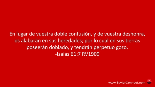 En lugar de vuestra doble confusión, y de vuestra deshonra, os alabarán en sus heredades; por lo cual en sus tierras poseerán doblado, y tendrán perpetuo gozo. -Isaías 61:7 RV1909