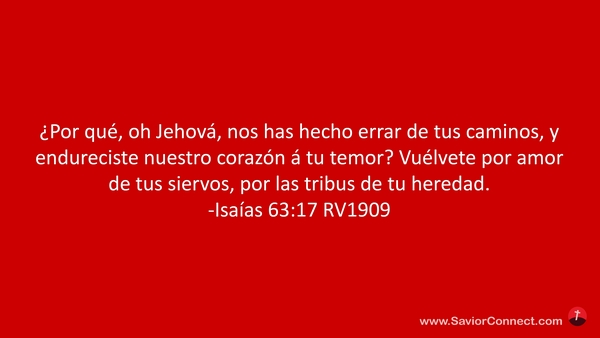 ¿Por qué, oh Jehová, nos has hecho errar de tus caminos, y endureciste nuestro corazón á tu temor? Vuélvete por amor de tus siervos, por las tribus de tu heredad. -Isaías 63:17 RV1909