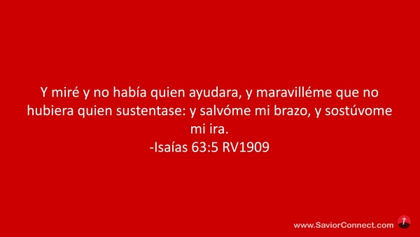Y miré y no había quien ayudara, y maravilléme que no hubiera quien sustentase: y salvóme mi brazo, y sostúvome mi ira. -Isaías 63:5 RV1909