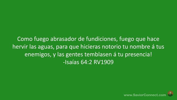 Como fuego abrasador de fundiciones, fuego que hace hervir las aguas, para que hicieras notorio tu nombre á tus enemigos, y las gentes temblasen á tu presencia! -Isaías 64:2 RV1909