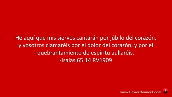 He aquí que mis siervos cantarán por júbilo del corazón, y vosotros clamaréis por el dolor del corazón, y por el quebrantamiento de espíritu aullaréis. -Isaías 65:14 RV1909