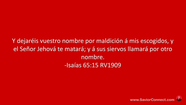 Y dejaréis vuestro nombre por maldición á mis escogidos, y el Señor Jehová te matará; y á sus siervos llamará por otro nombre. -Isaías 65:15 RV1909