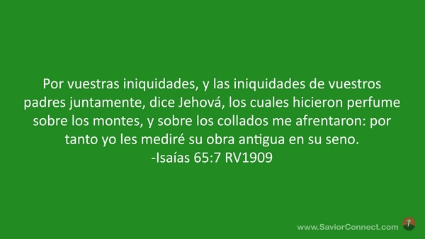 Por vuestras iniquidades, y las iniquidades de vuestros padres juntamente, dice Jehová, los cuales hicieron perfume sobre los montes, y sobre los collados me afrentaron: por tanto yo les mediré su obra antigua en su seno. -Isaías 65:7 RV1909