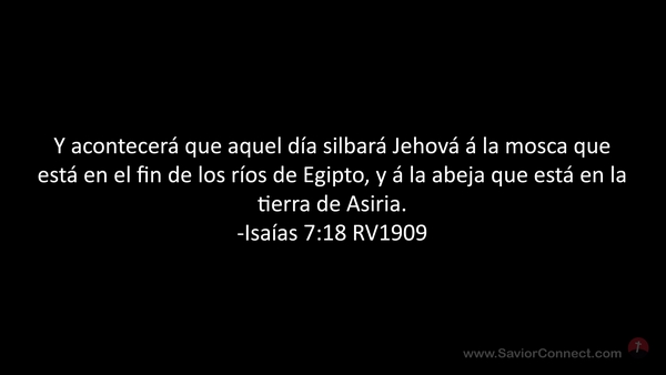 Y acontecerá que aquel día silbará Jehová á la mosca que está en el fin de los ríos de Egipto, y á la abeja que está en la tierra de Asiria. -Isaías 7:18 RV1909