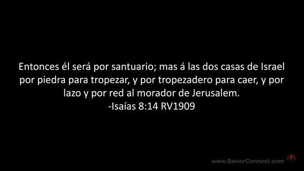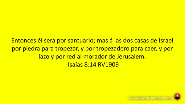 Entonces él será por santuario; mas á las dos casas de Israel por piedra para tropezar, y por tropezadero para caer, y por lazo y por red al morador de Jerusalem. -Isaías 8:14 RV1909