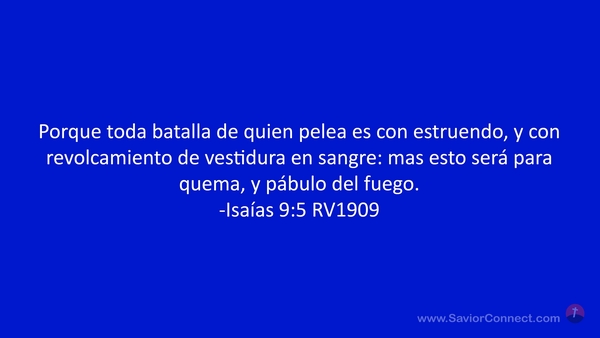 Porque toda batalla de quien pelea es con estruendo, y con revolcamiento de vestidura en sangre: mas esto será para quema, y pábulo del fuego. -Isaías 9:5 RV1909
