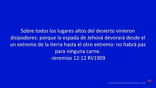 Sobre todos los lugares altos del desierto vinieron disipadores: porque la espada de Jehová devorará desde el un extremo de la tierra hasta el otro extremo: no habrá paz para ninguna carne. -Jeremías 12:12 RV1909