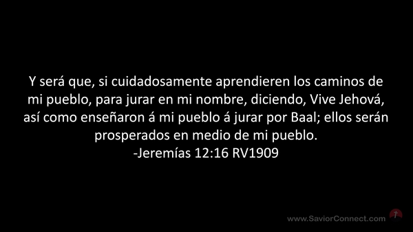 Y será que, si cuidadosamente aprendieren los caminos de mi pueblo, para jurar en mi nombre, diciendo, Vive Jehová, así como enseñaron á mi pueblo á jurar por Baal; ellos serán prosperados en medio de mi pueblo. -Jeremías 12:16 RV1909
