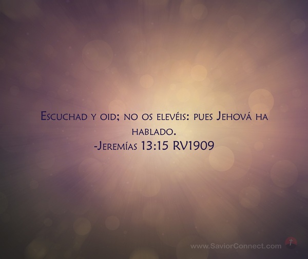 Escuchad y oid; no os elevéis: pues Jehová ha hablado. -Jeremías 13:15 RV1909