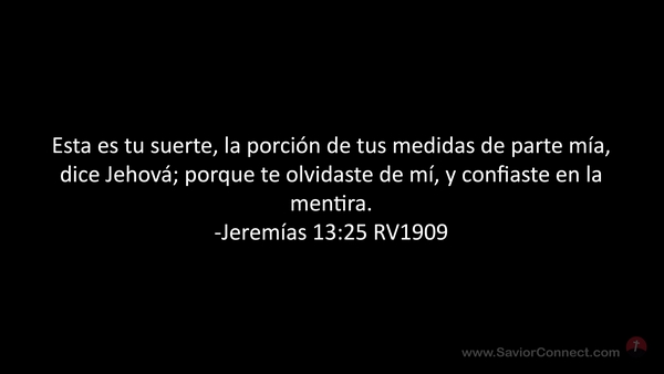 Esta es tu suerte, la porción de tus medidas de parte mía, dice Jehová; porque te olvidaste de mí, y confiaste en la mentira. -Jeremías 13:25 RV1909