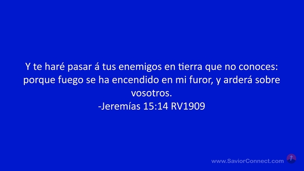 Y te haré pasar á tus enemigos en tierra que no conoces: porque fuego se ha encendido en mi furor, y arderá sobre vosotros. -Jeremías 15:14 RV1909