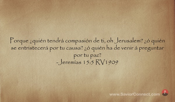 Porque ¿quién tendrá compasión de ti, oh Jerusalem? ¿ó quién se entristecerá por tu causa? ¿ó quién ha de venir á preguntar por tu paz? -Jeremías 15:5 RV1909