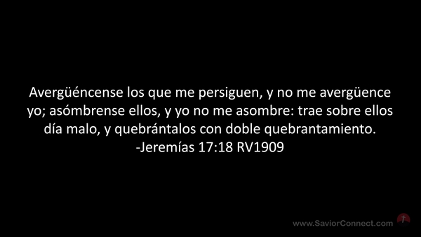 Avergüéncense los que me persiguen, y no me avergüence yo; asómbrense ellos, y yo no me asombre: trae sobre ellos día malo, y quebrántalos con doble quebrantamiento. -Jeremías 17:18 RV1909