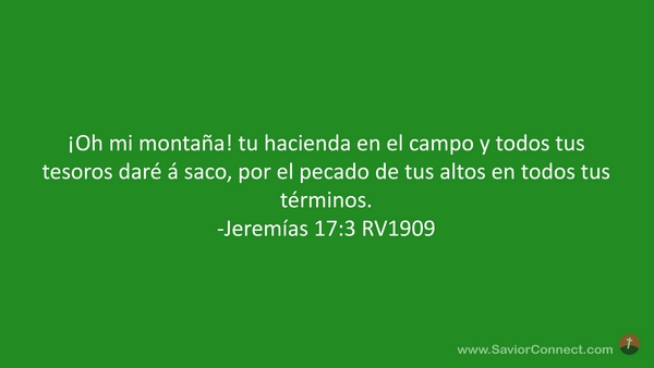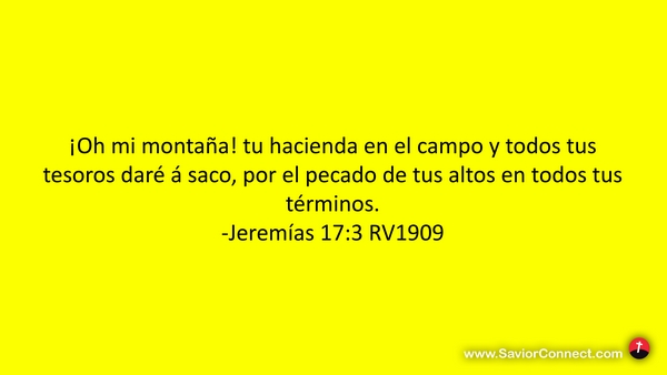 ¡Oh mi montaña! tu hacienda en el campo y todos tus tesoros daré á saco, por el pecado de tus altos en todos tus términos. -Jeremías 17:3 RV1909