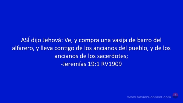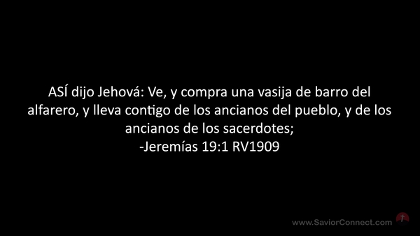 ASÍ dijo Jehová: Ve, y compra una vasija de barro del alfarero, y lleva contigo de los ancianos del pueblo, y de los ancianos de los sacerdotes; -Jeremías 19:1 RV1909