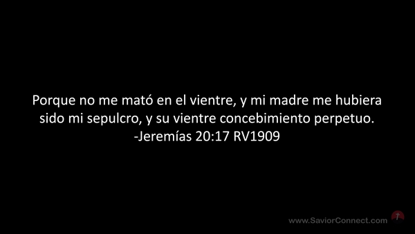 Porque no me mató en el vientre, y mi madre me hubiera sido mi sepulcro, y su vientre concebimiento perpetuo. -Jeremías 20:17 RV1909