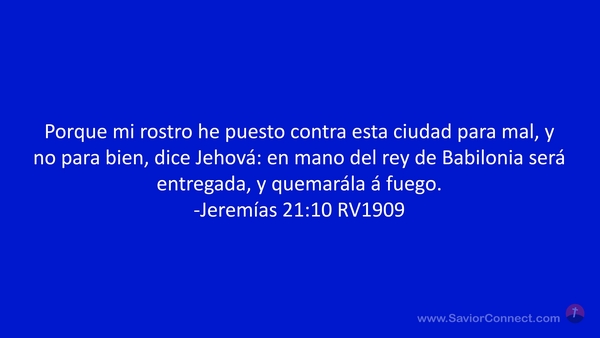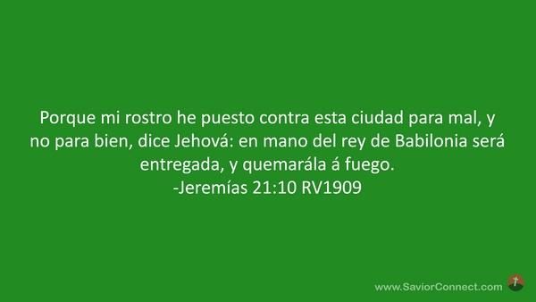 Porque mi rostro he puesto contra esta ciudad para mal, y no para bien, dice Jehová: en mano del rey de Babilonia será entregada, y quemarála á fuego. -Jeremías 21:10 RV1909