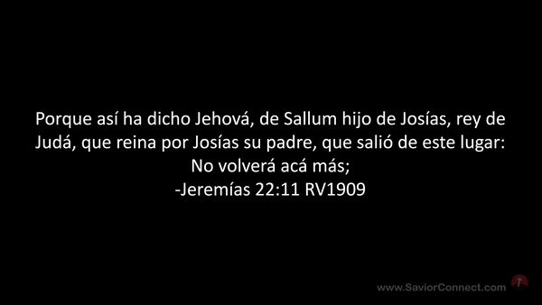 Porque así ha dicho Jehová, de Sallum hijo de Josías, rey de Judá, que reina por Josías su padre, que salió de este lugar: No volverá acá más; -Jeremías 22:11 RV1909