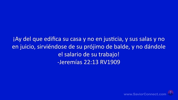 ¡Ay del que edifica su casa y no en justicia, y sus salas y no en juicio, sirviéndose de su prójimo de balde, y no dándole el salario de su trabajo! -Jeremías 22:13 RV1909