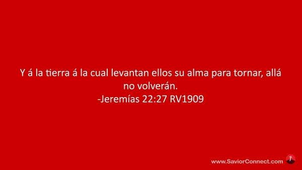 Y á la tierra á la cual levantan ellos su alma para tornar, allá no volverán. -Jeremías 22:27 RV1909