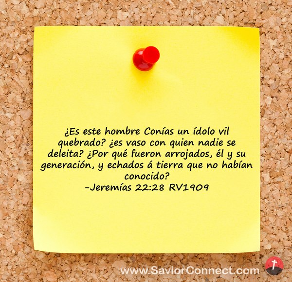 ¿Es este hombre Conías un ídolo vil quebrado? ¿es vaso con quien nadie se deleita? ¿Por qué fueron arrojados, él y su generación, y echados á tierra que no habían conocido? -Jeremías 22:28 RV1909