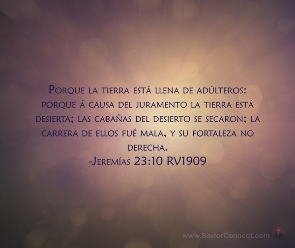 Porque la tierra está llena de adúlteros: porque á causa del juramento la tierra está desierta; las cabañas del desierto se secaron; la carrera de ellos fué mala, y su fortaleza no derecha. -Jeremías 23:10 RV1909