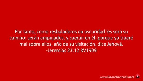 Por tanto, como resbaladeros en oscuridad les será su camino: serán empujados, y caerán en él: porque yo traeré mal sobre ellos, año de su visitación, dice Jehová. -Jeremías 23:12 RV1909